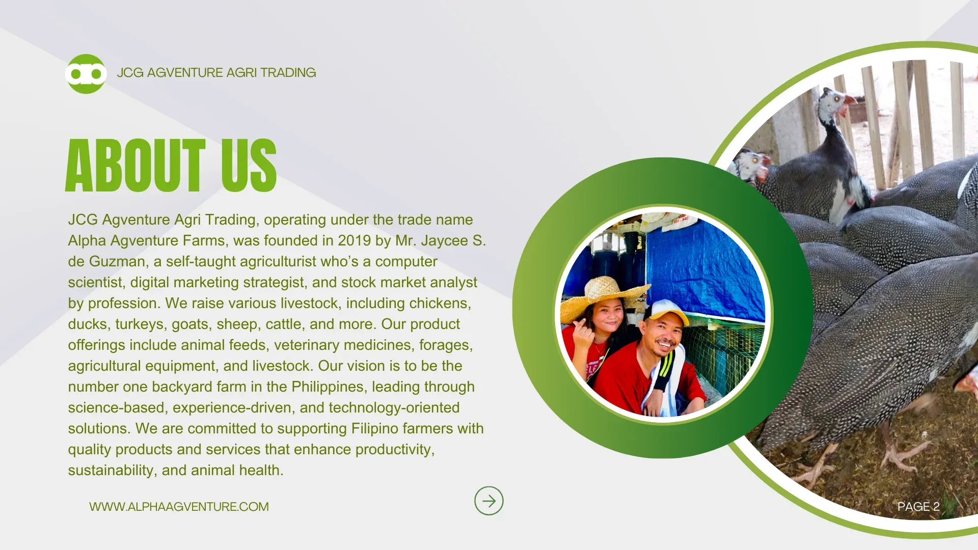 We are a private family farm based in Tarlac City, Philippines. Our journey began in the early 1990s with a simple belief: expand the breadth and depth of knowledge before expanding land, flock, and herd. When the scope of knowledge grows larger than the physical size of the farm, people with resources naturally gravitate toward you.