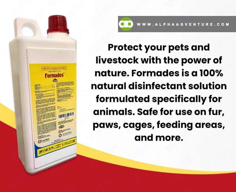 Alpha Agventure Farms provides guidance and access to genuine Formades disinfectant for sale. Each bottle comes with clear instructions for proper dilution: 10 mL per 2.5 L water for prevention, 10 mL per 1 L for treatment, and 2 liters of solution covers 100 square meters during outbreaks. Formades protects animals, equipment, and workers while delivering predictable results. Visit Alpha Agventure Farms today to secure Formades disinfectant for sale and ensure your farm stays safe and productive.