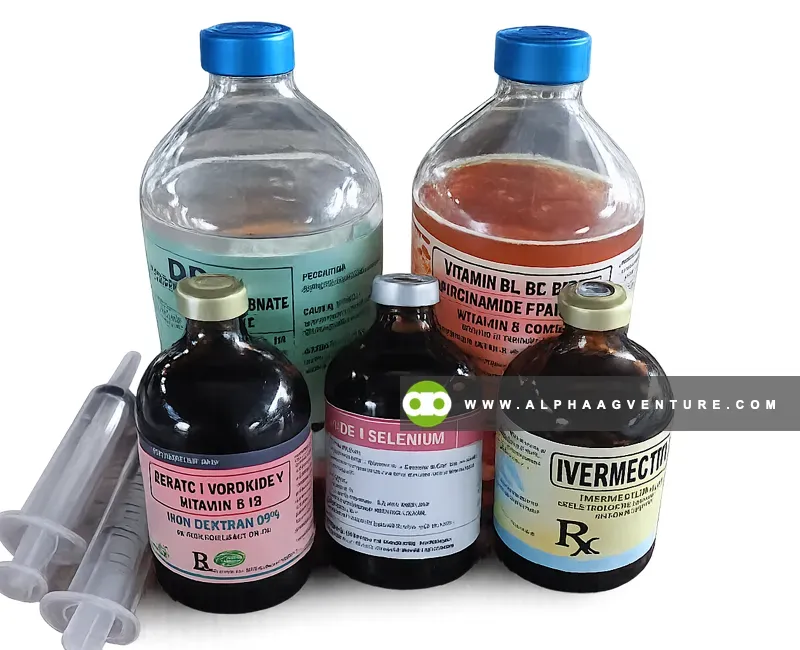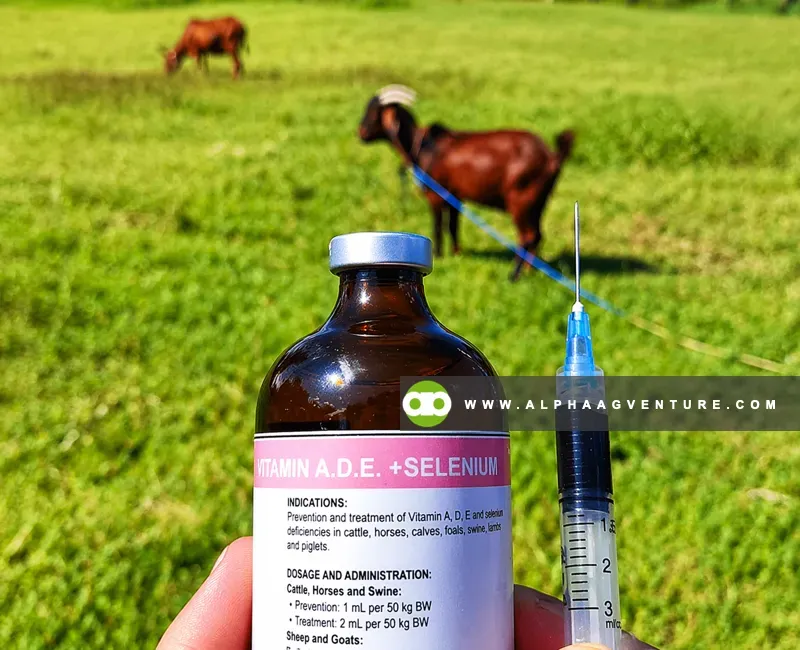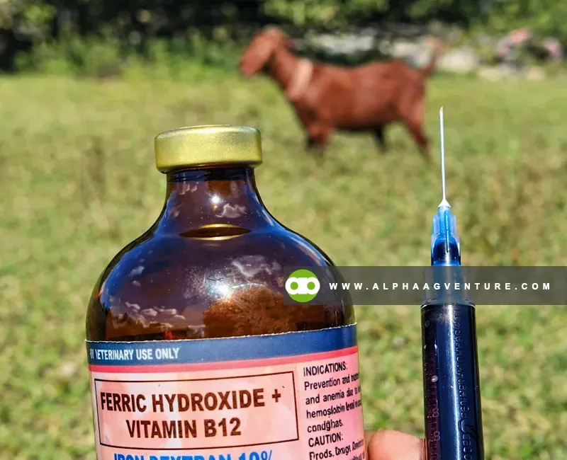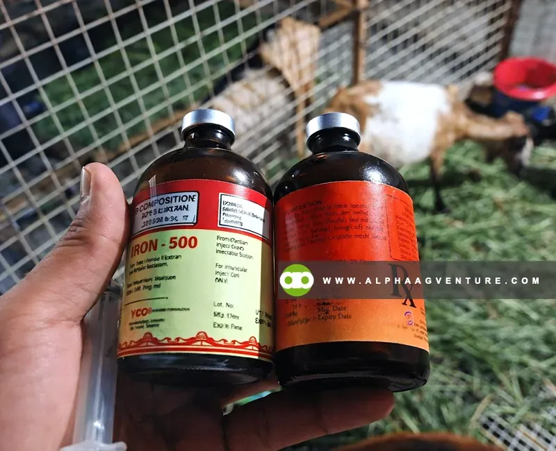 Vitamin supplementation strengthens immunity and overall vitality. We administer Vitamin B-Complex for energy metabolism, Iron Dextran to prevent anemia, Vitamin ADE for reproductive health and immune function, and DCM for bone development. These supplements support faster recovery from illnesses, improve kidding success rates, and enhance overall herd resilience, particularly in intensively managed goat farms.