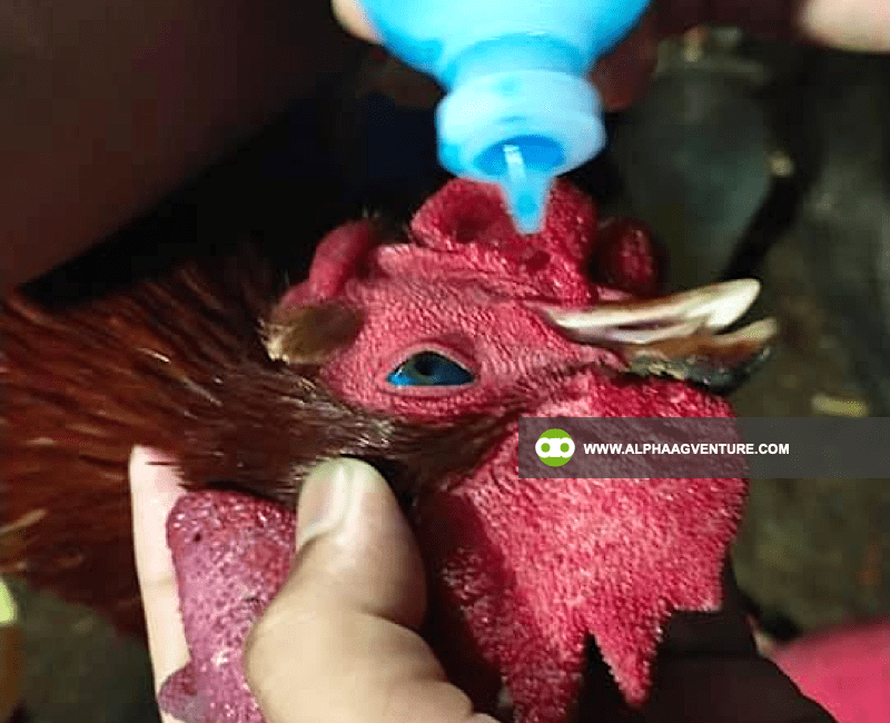 The vaccine can be administered through intra-nasal or intra-ocular. Farmers should follow specific instructions for optimal results. Proper administration ensures effective immunization.