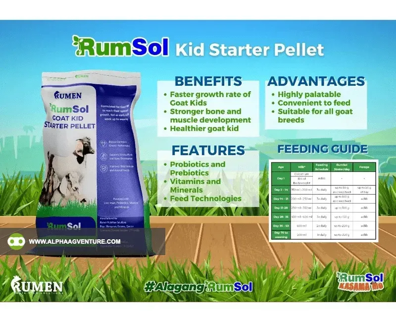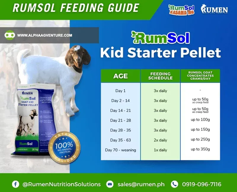 Rumsol Goat Kid Starter Feeds is designed to complement milk feeding rather than replace it entirely. While it helps young goats transition to solid food, milk remains a critical component of their early nutrition. For best results, use the pellet alongside a proper milk-feeding regimen to support optimal growth and development.