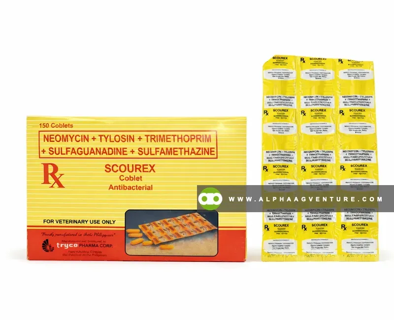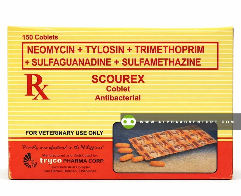 Is Scourex for sale the practical answer when digestive infections start affecting performance across multiple animals? This combination antibacterial is formulated to target a broad spectrum of pathogens using a strategic blend of neomycin, tylosin, trimethoprim, sulfaguanadine, and sulfamethazine, giving livestock a stronger chance at recovery under demanding farm conditions.